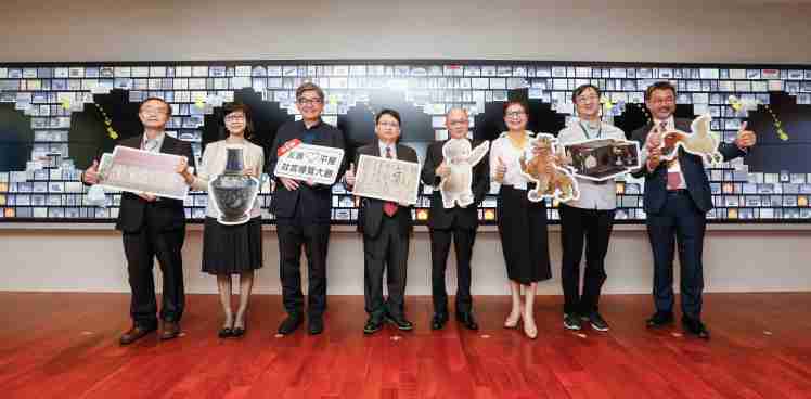 z6mg·人生就是博携手创利空间为故宫建置的智慧文物互动导览墙及轮播墙,,,今日正式启用。。。。(左四:z6mg·人生就是博新事业暨投资管理总部副总经理杨本豫、、右四:故宫博物院院长吴密察、、、、右三:太极影音董事长黄宝云)